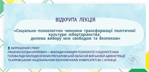 «Соціально-психологічні чинники трансформації політичної культури лібертаріанства: дилема вибору між свободою та безпекою» 9 ж...