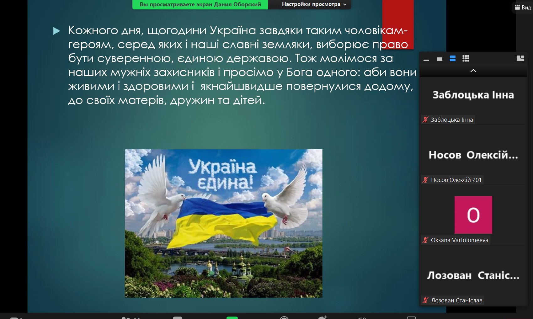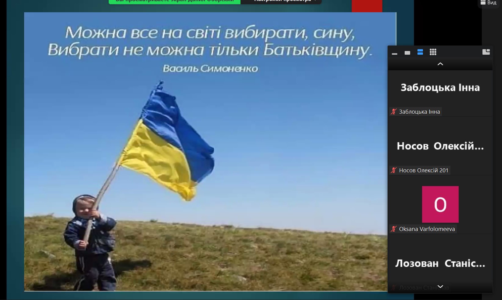 Здобувачі вищої освіти – Задоя Руслан, Оборський Даніїл, Пухальська Вікторія, Сорока Анна, Саргсян Аліна та Скачко Валерія підготували надзвичайно цікаві, насичені та хвилюючі презентації, в яких прозвучали слова подяки всім захисникам української державності.