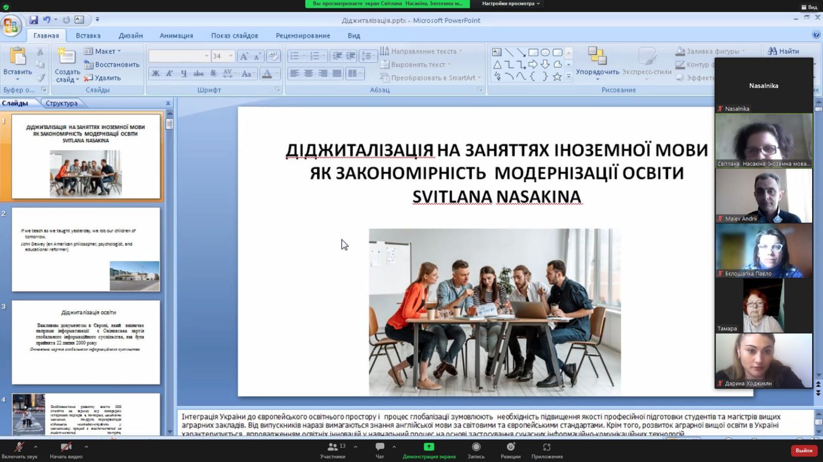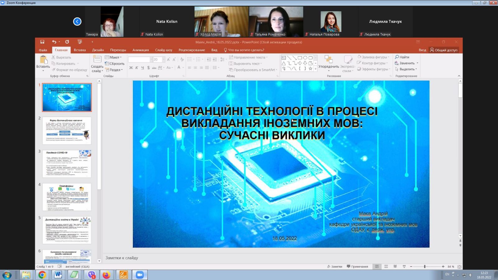 Підсумовуючи, завідувач кафедри української та іноземних мов ОДАУ к.філ.н., доцент Світлана Насакіна подякувала за цікаві та змістовні доповіді, наголосила на важливості методичної та наукової роботи та висловила сподівання на продовження практики організації міжкафедральних науково-комунікативних заходів.