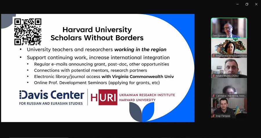 Начальник відділу міжнародних зв’язків Андрій Маєв від імені керівництва ОДАУ висловив щиру подяку представнику Гарварду за готовність до співпраці та важливу підтримку української наукової спільноти. У заході взяли участь викладачі, здобувачі вищої освіти, а також члени Ради молодих вчених ОДАУ, які володіють англійською мовою.