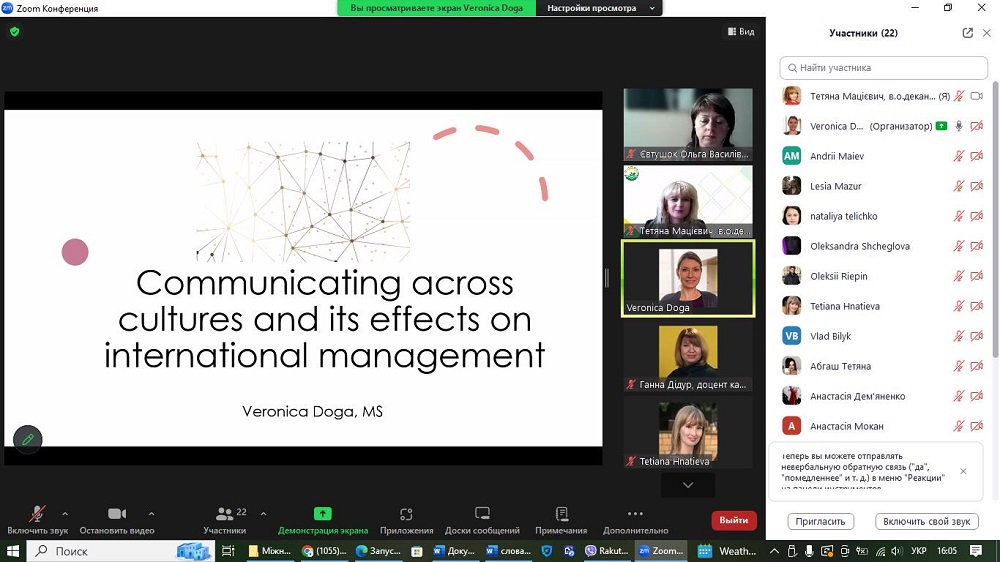 During the event, the aspects of cross-cultural communication, its importance for international business management was considered, and the impact of globalization on the development of intercultural communication was pointed out. The place and role of cross-cultural communication in globalization processes was also defined. The speaker told about the main trends of intercultural communication existing in the modern globalized world. After the lecture there was a lively discussion and exchange of ideas.