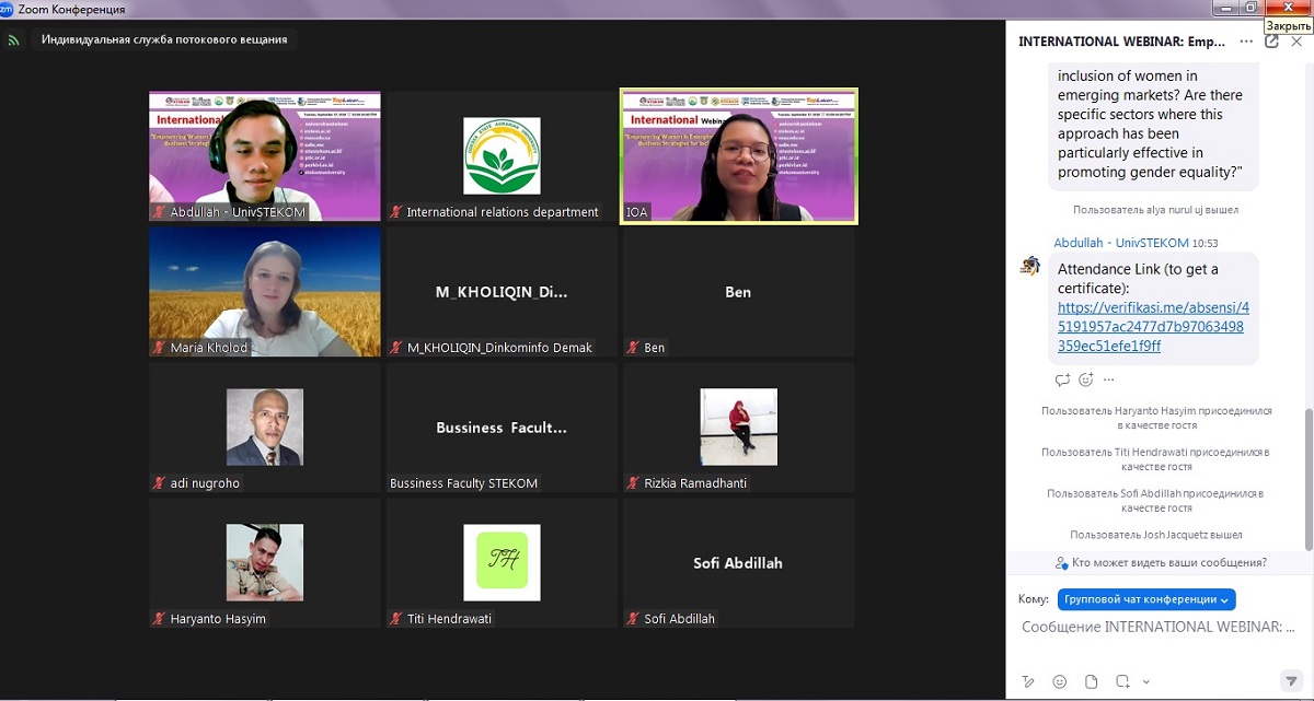 On September 17, 2024 the OSAU lecturer of the Department of Social and Humanitarian Sciences Mariia Kholod participated in the international webinar “Empowering Women in Emerging Markets: Business Strategies for Inclusion”, organized by the University of Science and Computer Technology (STEKOM, Indonesia).