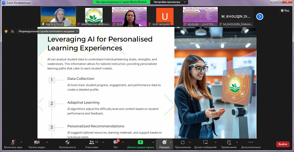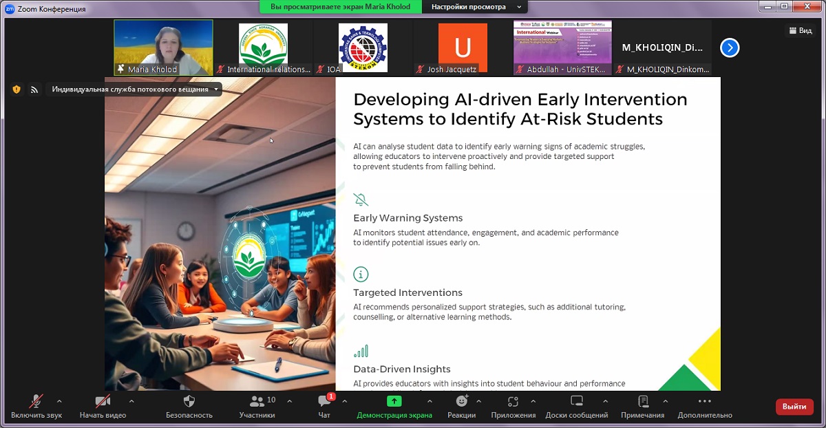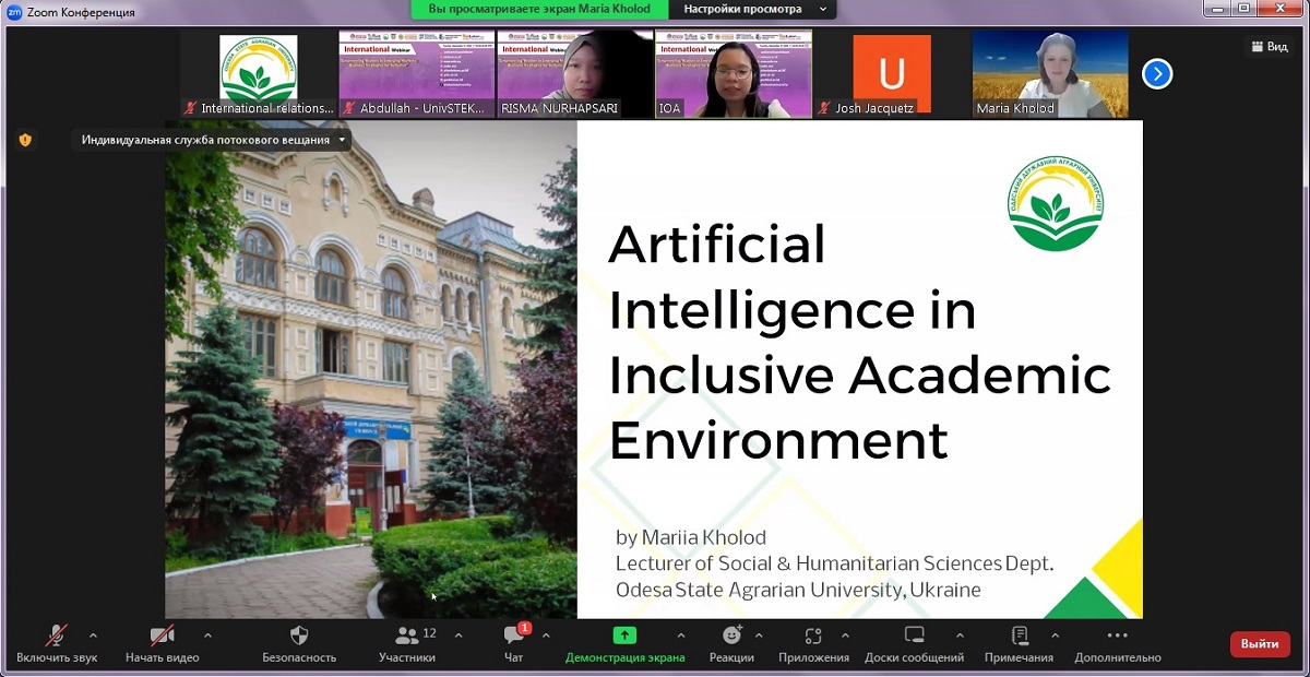 The representative of Odesa state agrarian university Mariia Kholod presented a meaningful report on the topic “Artificial Intelligence in the Development of the Academic Field”. Interesting, visual and useful information was provided.