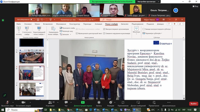 On February 21, 2024 the online interdepartmental seminar on: “Internship under the ERASMUS + program at the University of Applied Sciences “Lavoslav Ružička“, Vukovar, Croatia ” was held. The event, organized by the Faculty of Economics and Management, brought together the OSAU teaching staff and students, as well as scientists of Uman National University of Horticulture.