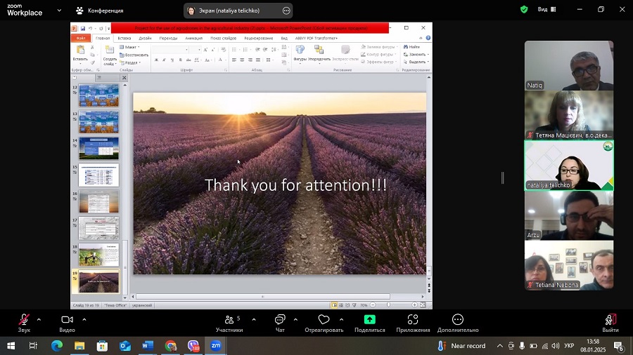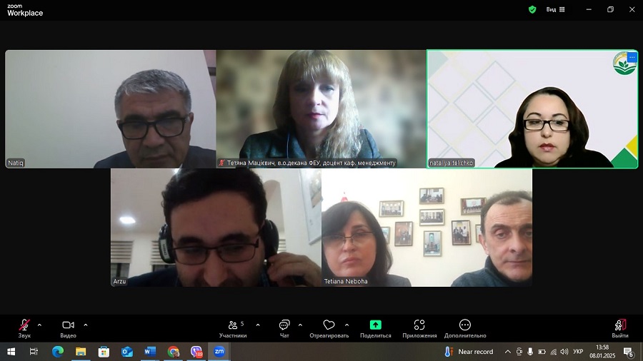 On January 8, 2025 the online work meeting with the representatives of Western Caspian University (Baku, Azerbaijan) was held. The event became part of the practical implementation of the Memorandum of Understanding dated December 1, 2024 concluded at the initiative of the Faculty of Economics and Management. On behalf of OSAU the meeting was attended by the Vice-Rector for Scientific work and International Relations Tetiana Neboha, Acting Dean of the Faculty of Economics and Management Tetiana Matsiievych, Head of the Department of Management Halyna Zapsha, Associate Professor of the Department of Management Nataliia Telichko and Head of the Department of International Relations Andrii Maiev. During the conversation with the representatives of Azerbaijan university the possibilities of implementing academic mobility for research and teaching staff were discussed, the conditions of competitive selection were clarified, the experience of teaching educational components in English at OSAU was presented, also hopes for mutual participation of the parties’ representatives in scientific and communication activities, and publications of research results were expressed. The two parties expressed gratitude for the substantive communication and expressed hopes for the practical implementation of cooperation in 2025.