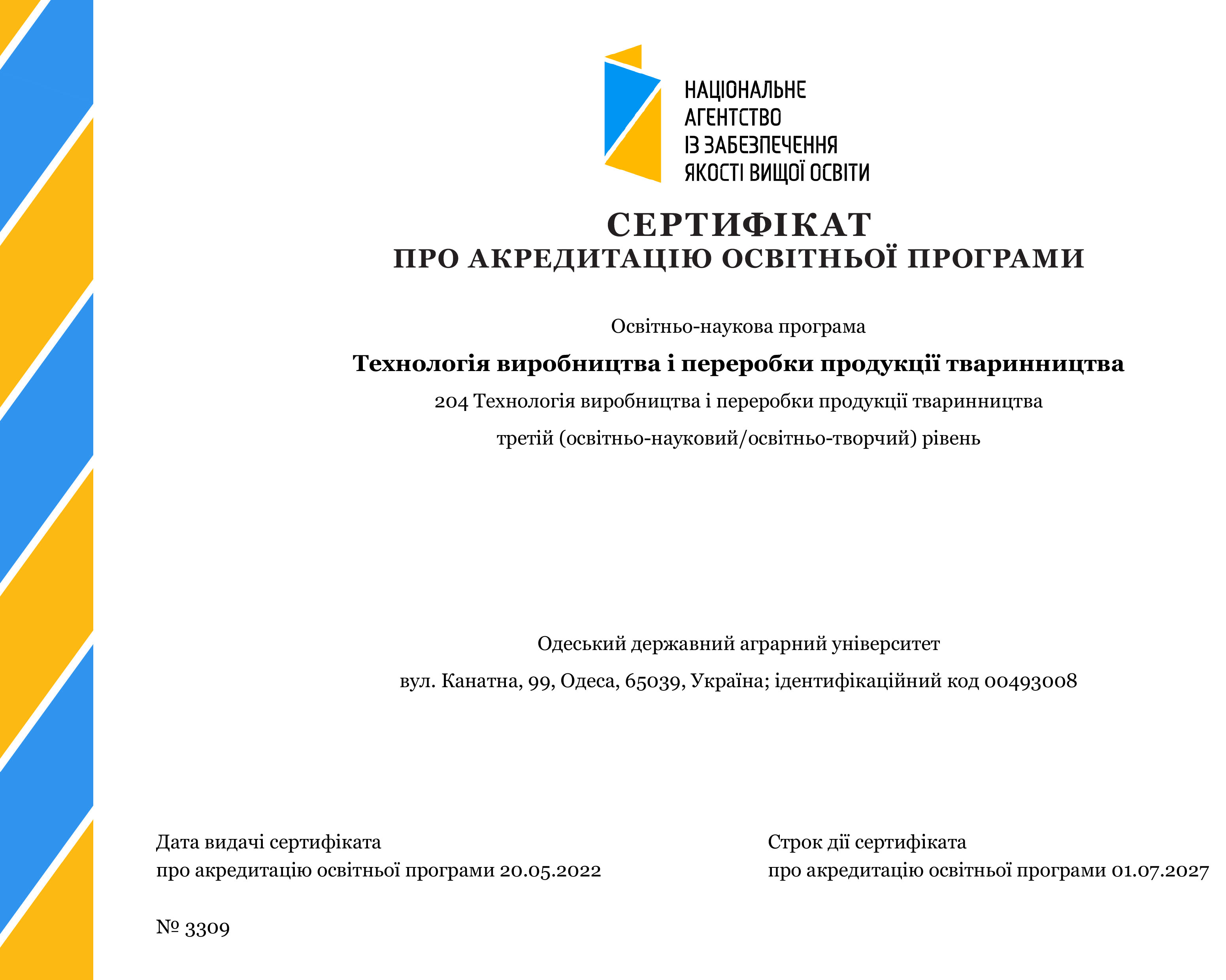 Відомості про ОДАУ щодо здійснення освітньої діяльності у сфері вищої освіти станом на 21.04.2022