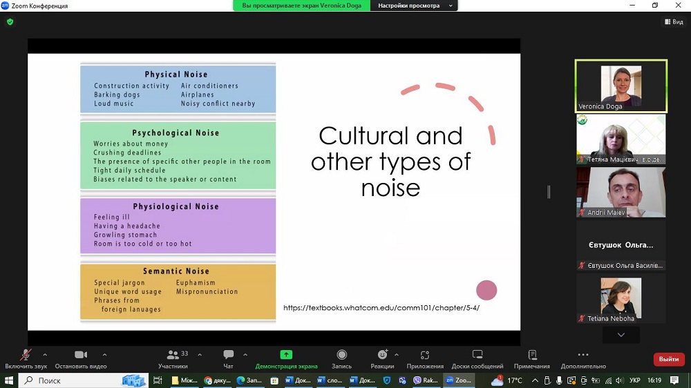 15 травня 2024 року науково-педагогічні працівники та здобувачі ОДАУ з зацікавленістю долучилися до онлайн-лекції на тему «Міжкультурна комунікація та її вплив на міжнародне управління бізнесом». Захід, що було організовано факультетом економіки та управління в рамках відзначення Дня науки в Україні, відкрила Тетяна Мацієвич, в.о. декана факультету економіки та управління, кандидат економічних наук, доцент. Тетяна Мацієвич привітала запрошеного спікера та учасників, і розповіла про історію Університету Небраски (Омаха, США). Запрошений спікер: Veronica Doga, Програмний директор Центру розвитку бізнесу Університету Небраски.