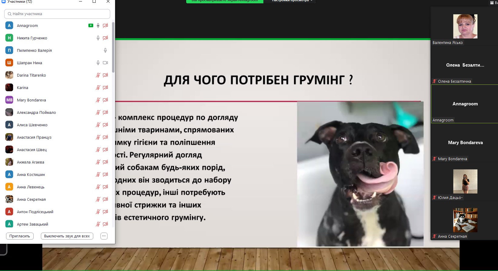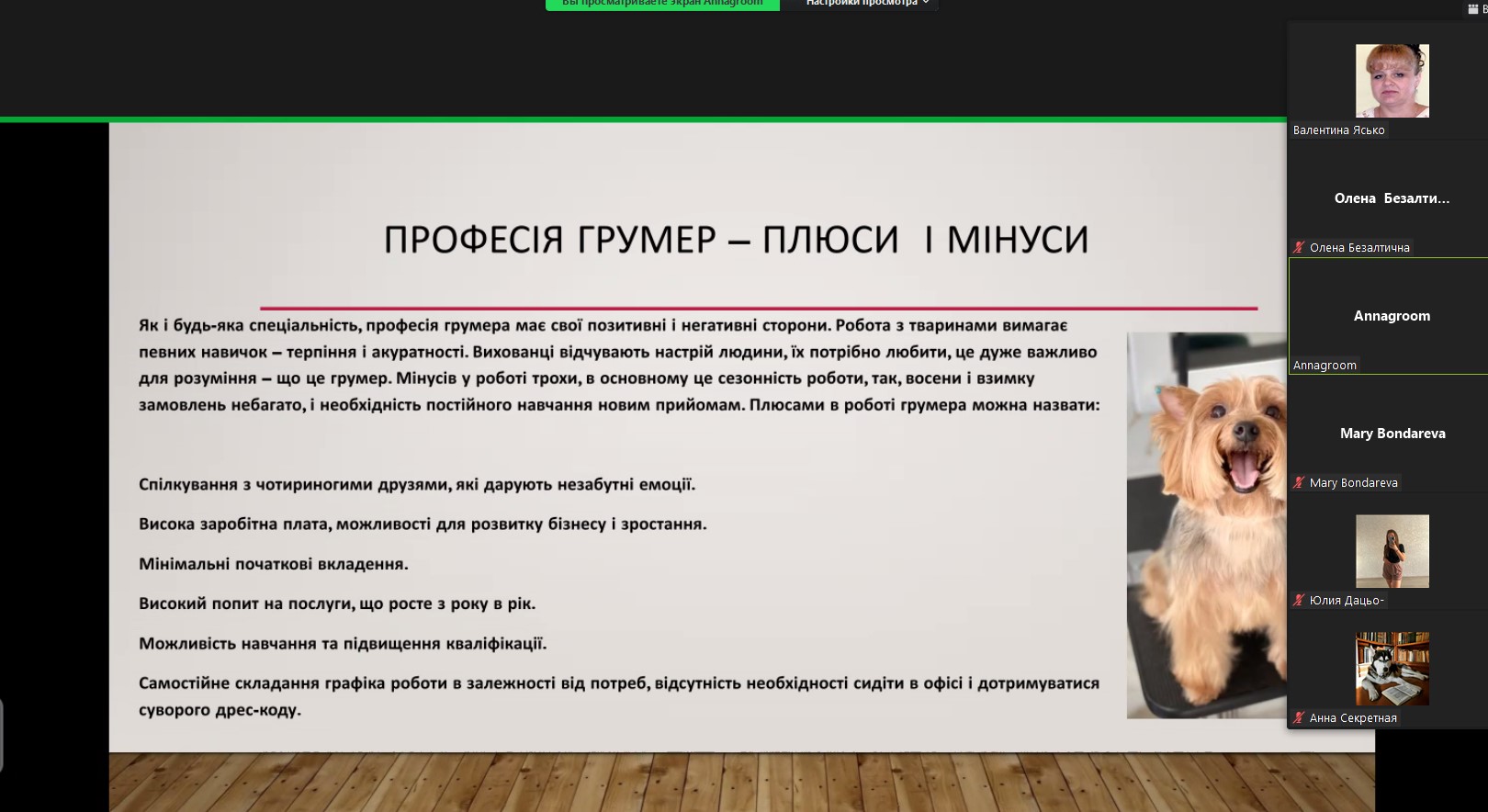 29 вересня 2022 року грумер салону «Bloom-groom» Анна Шепітко на практикумі із фаху познайомила здобувачів ННІБтаА з особливостями своєї роботи. Висвітлила плюси та мінуси професії грумера, підкреслила її важливість та творчий підхід. Розповіла про особливості стрижок собак різних порід, їх підготовку до виставок.