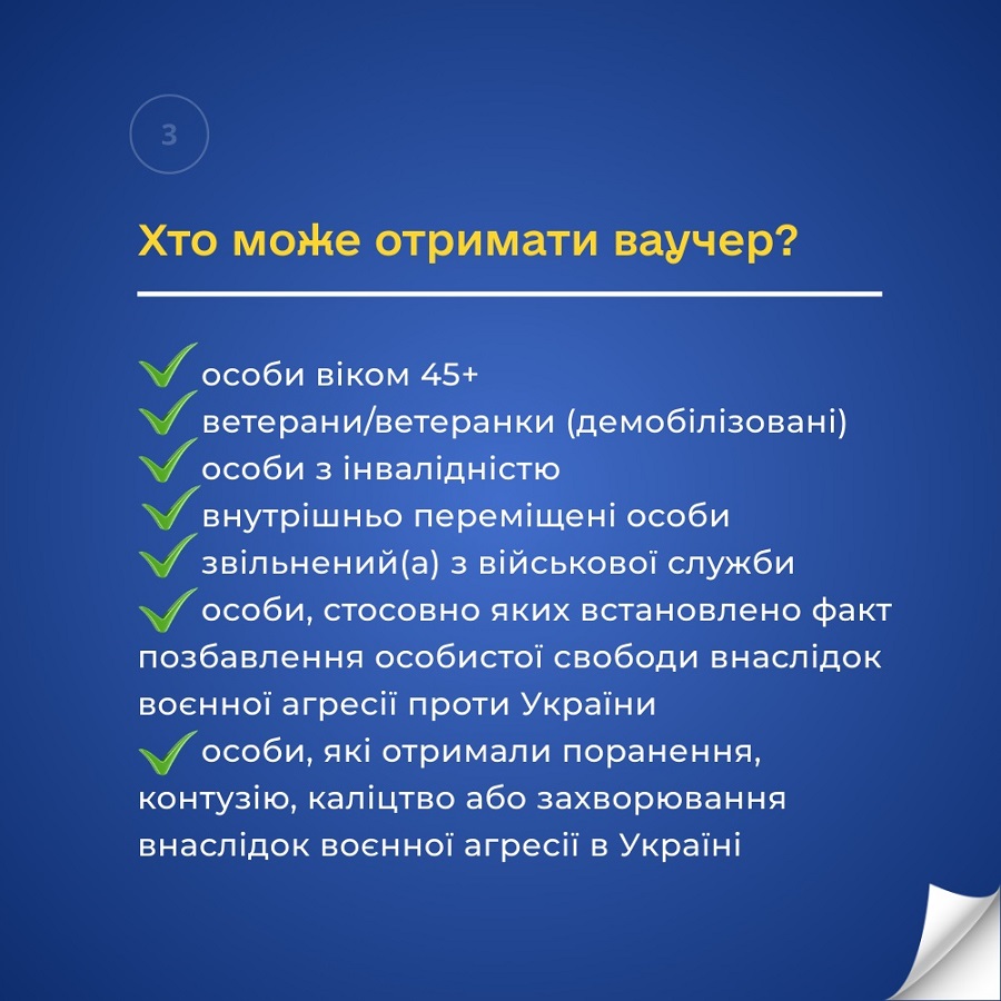Громадяни, які мають професійно-технічну чи вищу освіту, не зареєстровані у службі зайнятості як безробітні, можуть безоплатно отримати від служби зайнятості ваучер та підвищити свій професійний рівень.