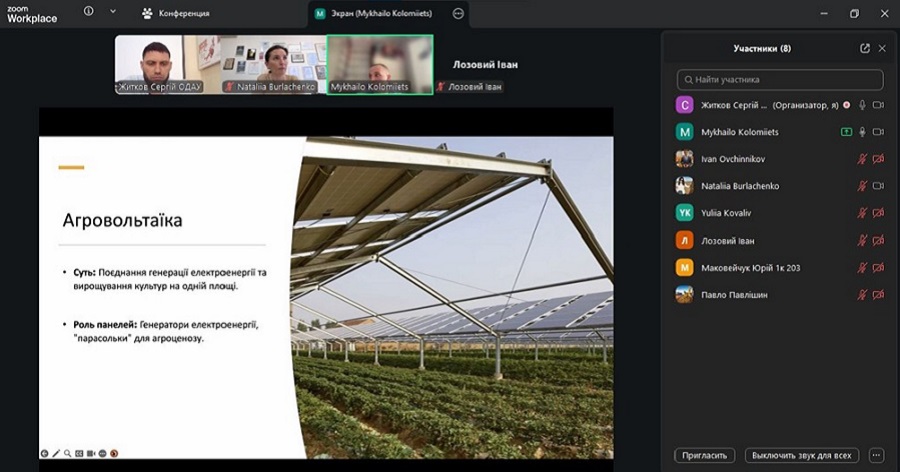Завершальним етапом заходу стало обговорення пропозицій до резолюції міжнародної конференції, у якій окреслено ключові напрями подальшого розвитку агровольтаїки в Україні.