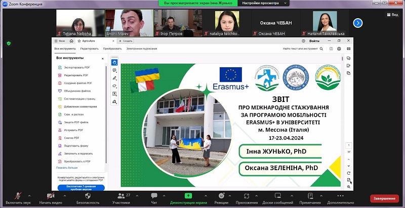 - Реалізація академічної мобільності в Університеті міста Мессіна (Італія) – Інна Жунько, завідувач багатопрофільної лабораторії ветеринарної медицини; Оксана Зеленіна, доцент кафедри фізіології, патофізіології та біохімії.