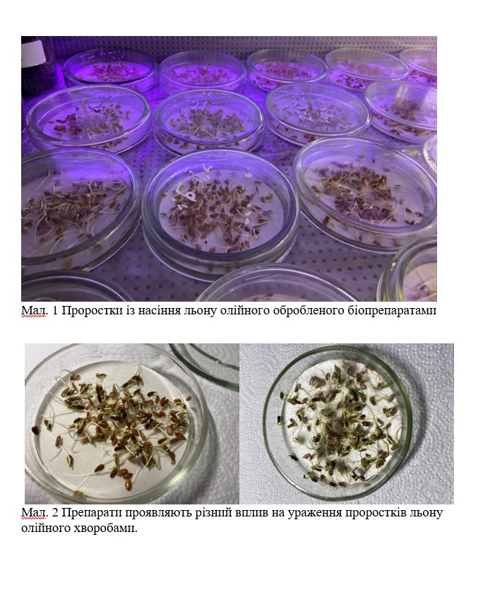 В залежності від біопрепарату яким обробили насіння льону олійного – проростки були контрастними за схожістю та ураженням хворобами.