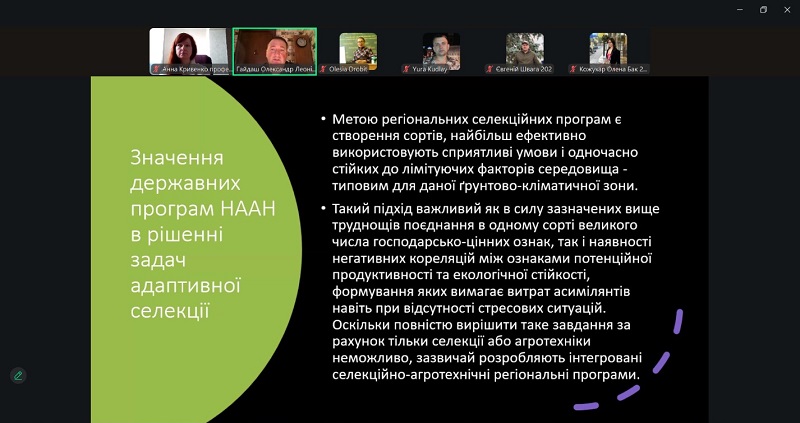 Олександр Гайдаш детально зупинився на основних етапах селекційного процесу, від добору вихідного матеріалу до створення нових сортів і гібридів, придатних до вирощування в різних ґрунтово-кліматичних умовах України.