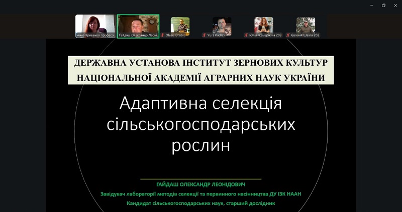 Під час лекції спікер представив сучасні досягнення Інституту зернових культур НААН України, розкрив теоретичні основи селекції як складової генетики рослин і охарактеризував розподіл гібридів основних сільськогосподарських культур між вітчизняними та іноземними компаніями.