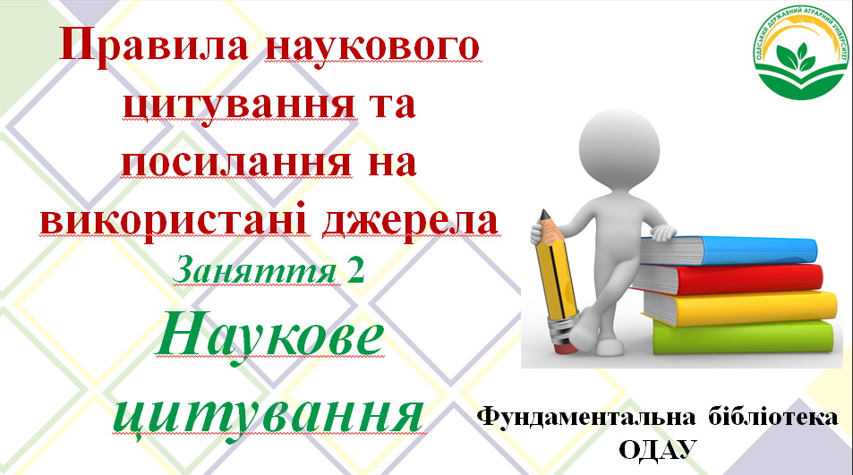 За ініціативи фундаментальної бібліотеки ОДАУ за участю Ради молодих вчених 24 жовтня 2023 року відбувся вебінар “Правила наукового цитування та посилання на використані джерела”.