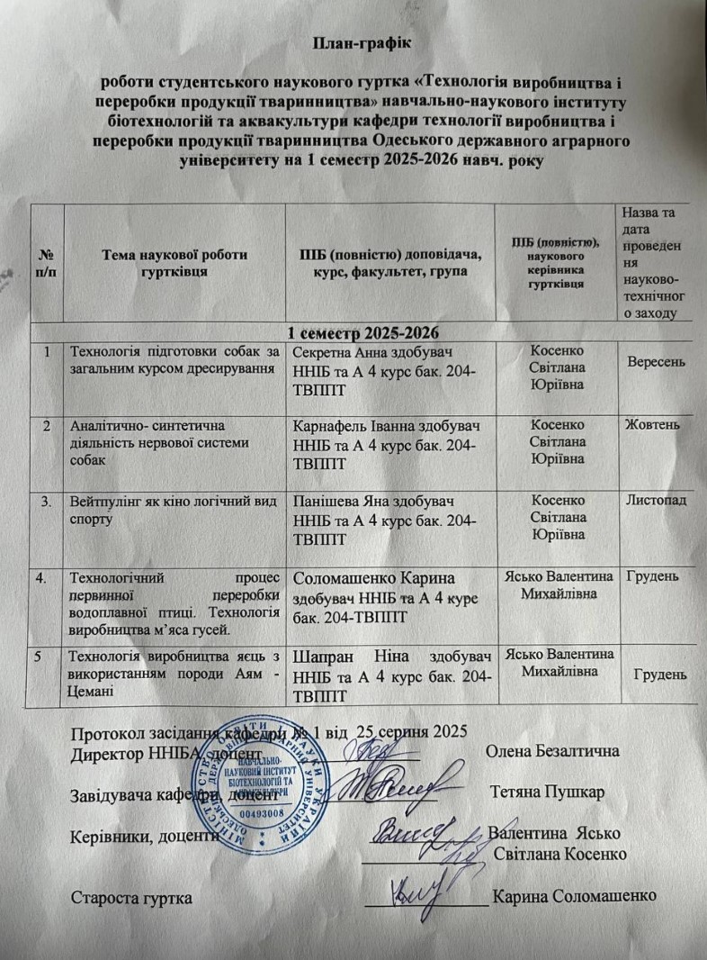 Гурток Технологія виробництва і переробки продукції тваринництва