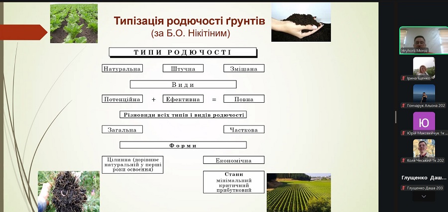 Лекції мали не лише теоретичне, а й практичне значення, оскільки студенти поглибили свої знання та дізналися нові аспекти щодо оцінки родючості ґрунтів, які показники враховувати під час аналізу, а також які методи застосовуються для моніторингу їх стану, а також особливості формування та підтримання ґрунтової родючості, що є основою сталого агровиробництва. Особлива увага була приділена екологічним аспектам та питанням зміни родючості ґрунтів, які набувають все більшої актуальності у сучасному сільському господарстві.