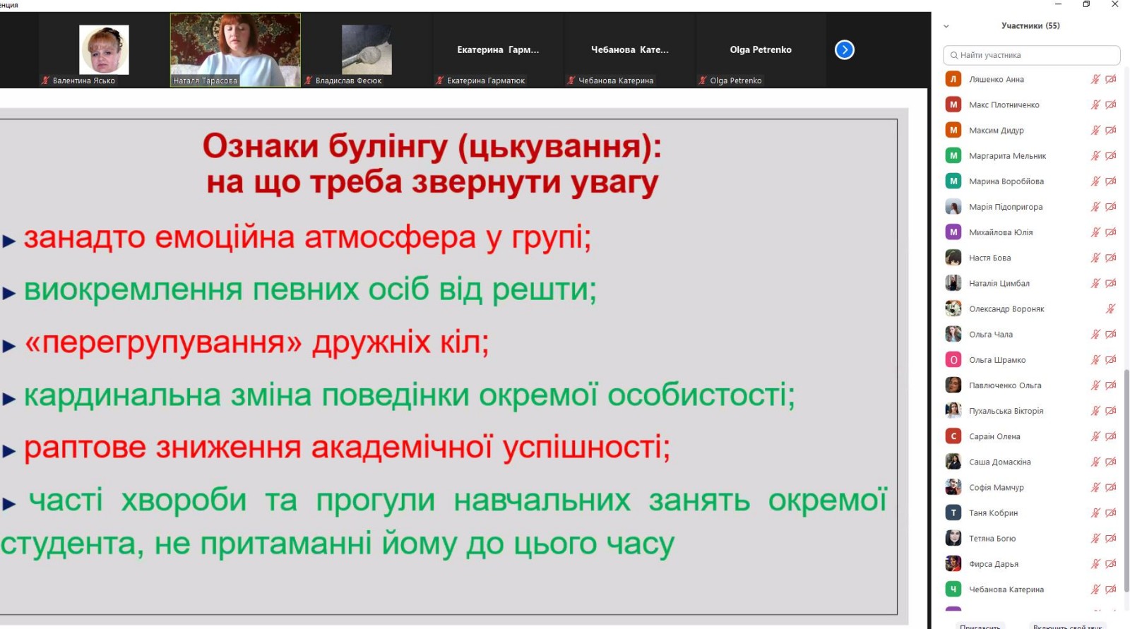 – актуальність проблеми «булінгу (цькування)» у закладах вищої освіти;