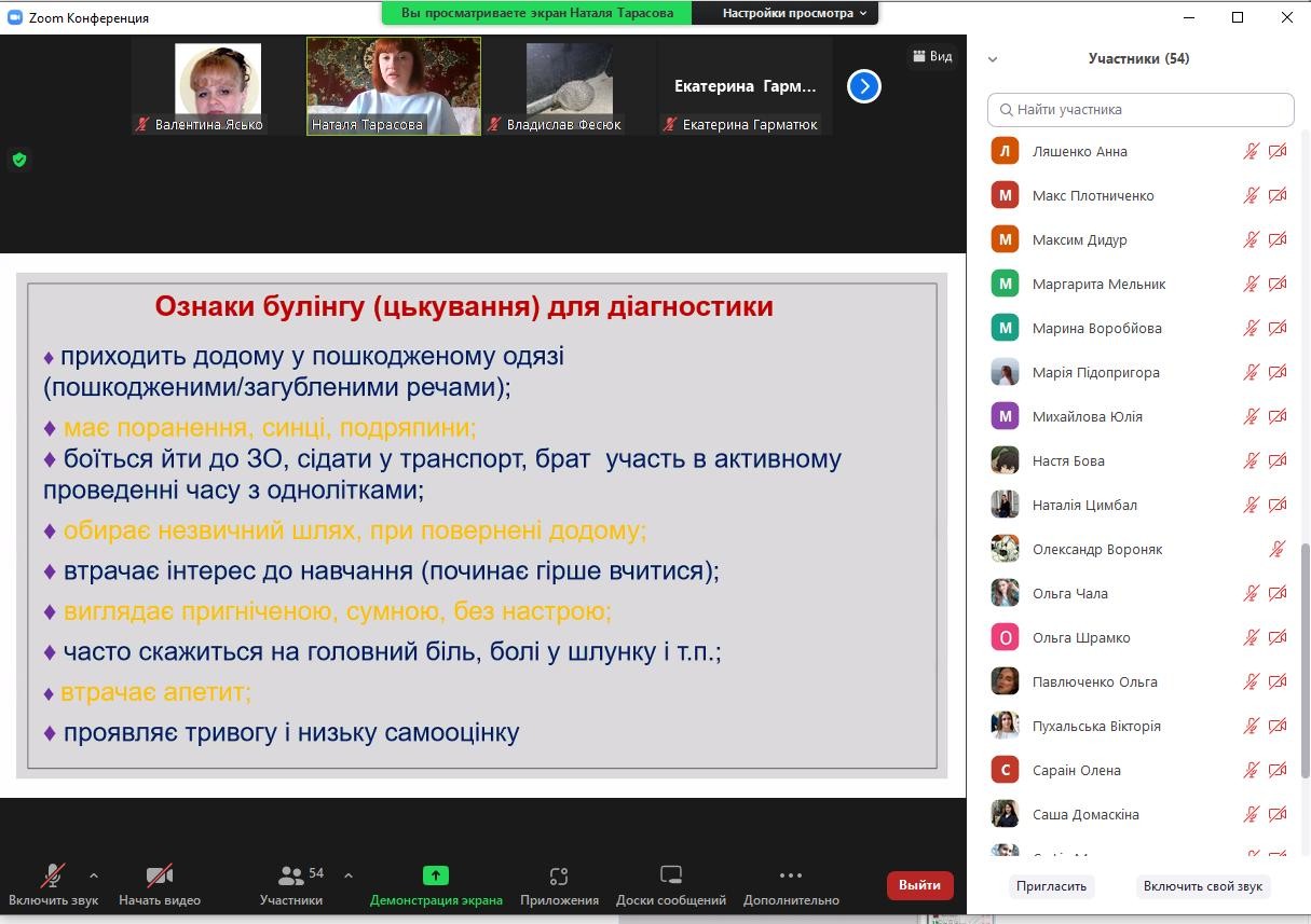 за темою: «Діагностика та критерії визначення шкоди фізичному та психічному здоров’ю, заподіяної булінгом (цькуванням)»