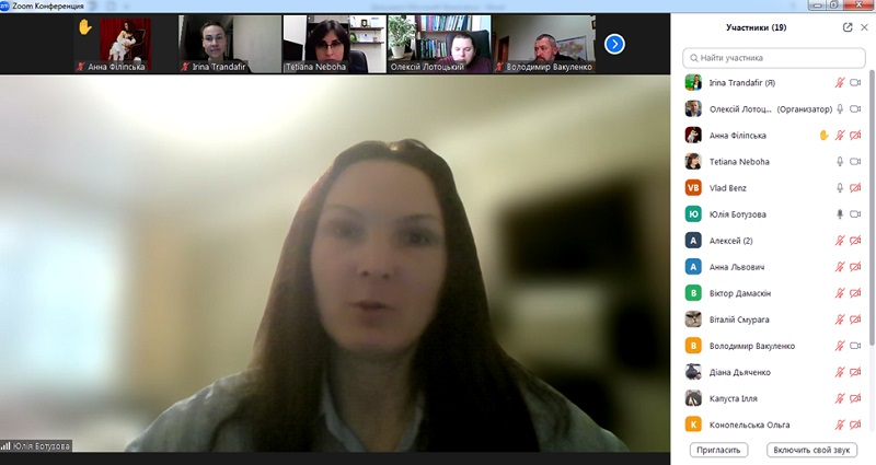 На засідання була запрошена Юлія БОТУЗОВА – доктор педагогічних наук, доцент, доцент кафедри математики та цифрових технологій Центральноукраїнського державного університету імені Володимира Винниченка – голова Ради молодих вчених. Увазі учасників Юлія БОТУЗОВА та Олексій ЛОТОЦЬКИЙ представили меморандум про співпрацю між Радами молодих вчених університетів та анонсували організацію спільних освітньо-наукових заходів в рамках меморандуму (гостьові лекції, організація круглих столів, наукових конференцій тощо).