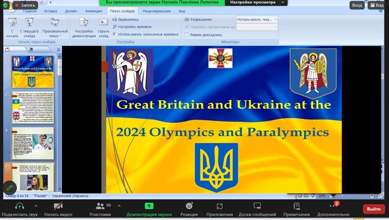 Кандидат філологічних наук, доцент Світлана НАСАКІНА та завідувач відділом обслуговування Тетяна БОНДАРЕНКО розповіли слухачам про успіхи наших та англійських спортсменів на літніх Олімпійських іграх 2024 року в Парижі, а також про учасників Паралімпіади.