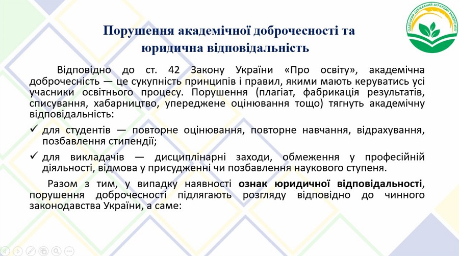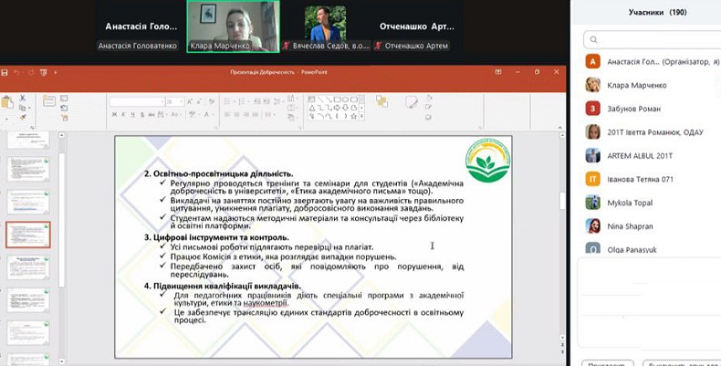 В ОДАУ було проведено онлайн-лекцію на тему академічної доброчесності