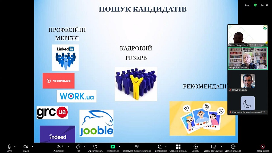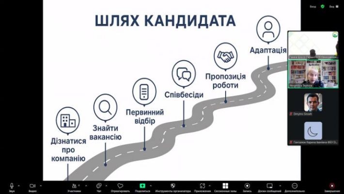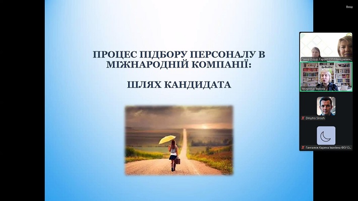 Спікером заходу виступила Теплова Євгенія Сергіївна, регіональний директор з персоналу міжнародної компанії. У своєму виступі вона ґрунтовно висвітлила особливості системи підбору персоналу в міжнародних компаніях, окреслила основні етапи рекрутингу — від подання резюме до фінального інтерв’ю та адаптації нового працівника, а також поділилася практичними порадами щодо підготовки до співбесід і розвитку професійних компетентностей.