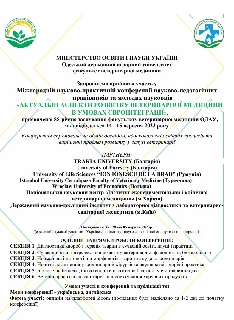 «АКТУАЛЬНІ АСПЕКТИ РОЗВИТКУ ВЕТЕРИНАРНОЇ МЕДИЦИНИ В УМОВАХ ЄВРОІНТЕГРАЦІЇ»