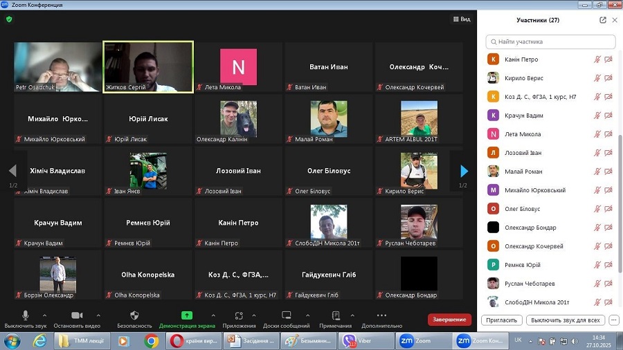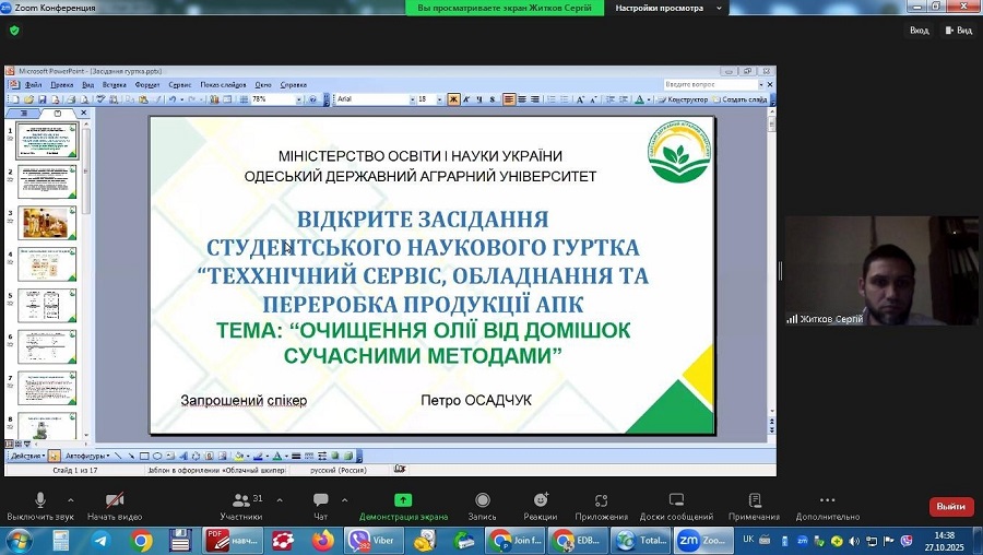 За участі Наукового товариства здобувачів вищої освіти Одеського державного аграрного університету 27 жовтня 2025 року відбулося відкрите засідання студентського наукового гуртка «Технічний сервіс, обладнання та переробка продукції АПК».