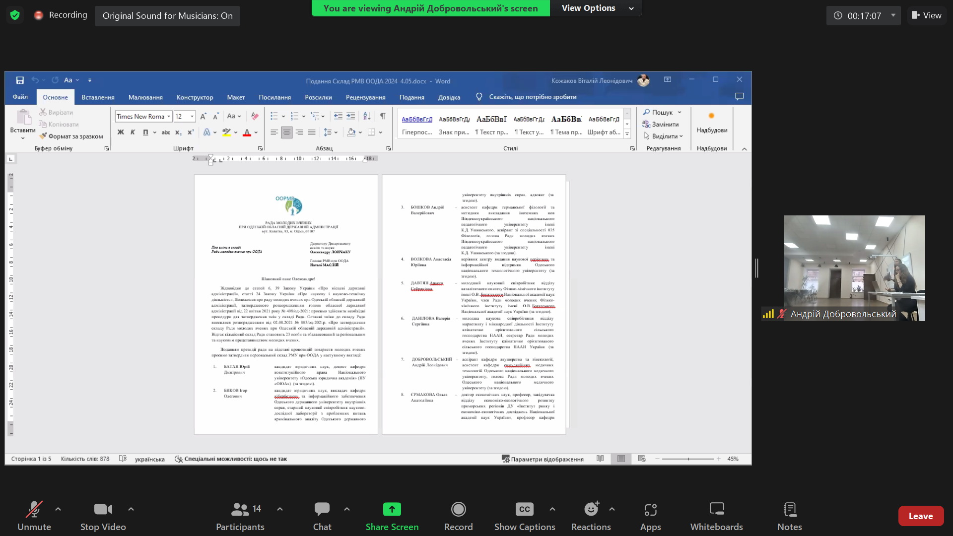 5 березня 2024 року відбулось он-лайн засідання Ради молодих вчених при Одеській обласній державній адміністрації за участю представників закладів вищої освіти міста. Одеський державний аграрний університет представляв Олексій Лотоцький – голова ради молодих вчених ОДАУ.