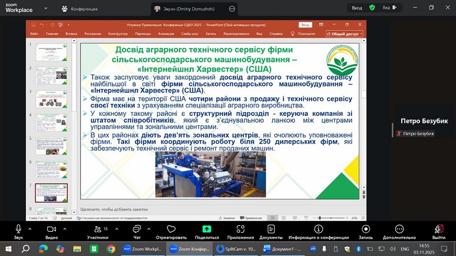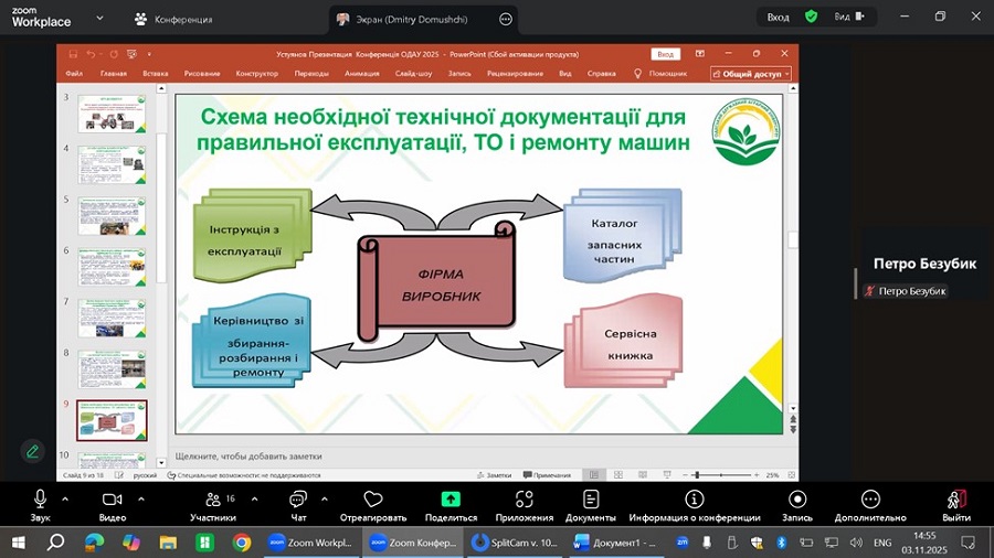 За участю Наукового товариства здобувачів вищої освіти Одеського державного аграрного університету 3 листопада 2025 року відбулося відкрите засідання наукового гуртка «Підвищення надійності та ефективності використання машин, технологічних комплексів та систем в аграрному виробництві».