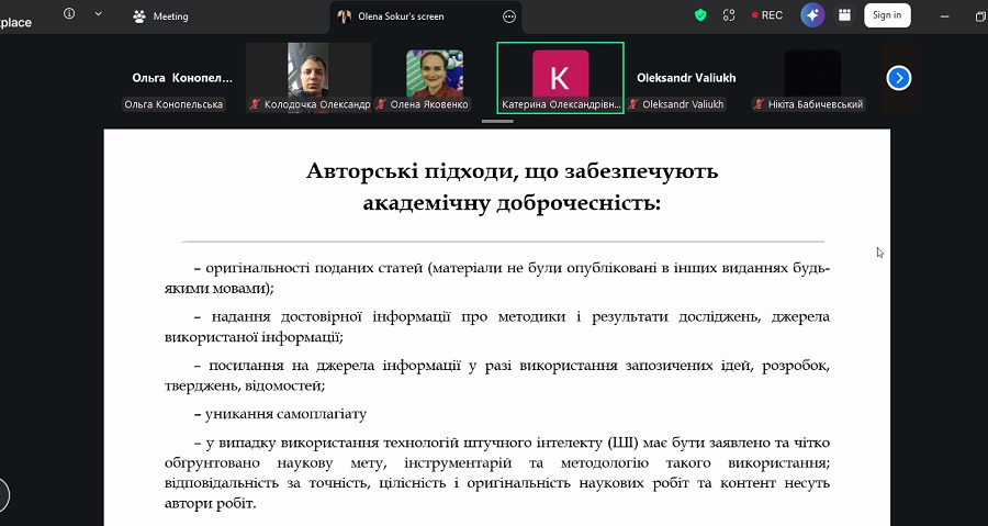 У межах вебінару було розглянуто ключові аспекти академічної доброчесності, зокрема її сутність і складники, вимоги законодавства України, основні види порушень та підходи до їх запобігання. Окрему увагу приділено принципам роботи антиплагіатних систем і практичним рекомендаціям для авторів наукових публікацій.