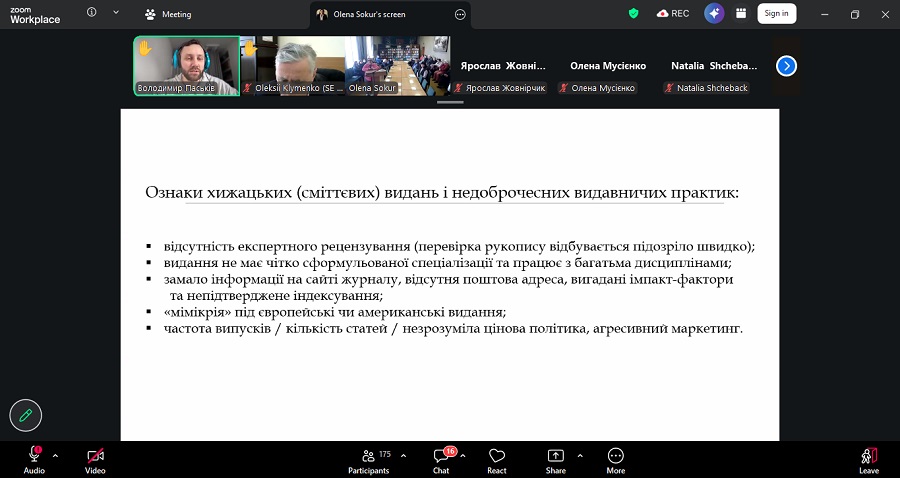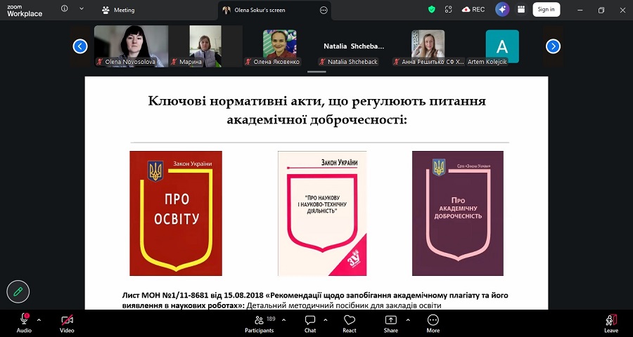 У межах вебінару було розглянуто ключові аспекти академічної доброчесності, зокрема її сутність і складники, вимоги законодавства України, основні види порушень та підходи до їх запобігання. Окрему увагу приділено принципам роботи антиплагіатних систем і практичним рекомендаціям для авторів наукових публікацій.