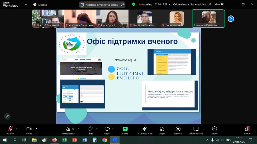 22 січня 2025 року відбулася он-лайн зустріч аспірантів Одеського державного аграрного університету, як підписантів Меморандуму про партнерство, з представниками Ради молодих вчених при Міністерстві освіти і науки України.