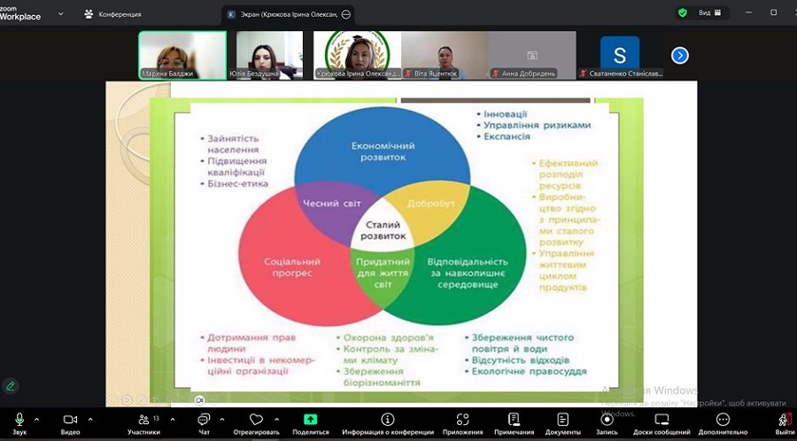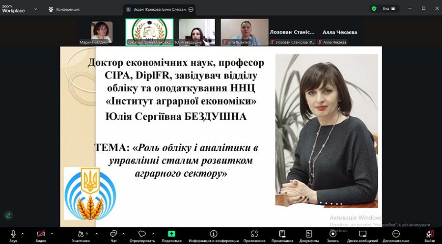 Юлія Сергіївна виступила з доповіддю “Роль обліку і аналітики в управлінні сталим розвитком аграрного сектору”. Здобувачів зацікавили розроблені фахівцями ННЦ ІАЕ прогнози досягнення сталого розвитку України у повоєнний період і визначені переваги в даному напрямку аграрного сектору економіки. Виступ поступово перейшов у діалог між лектором і здобувачами.